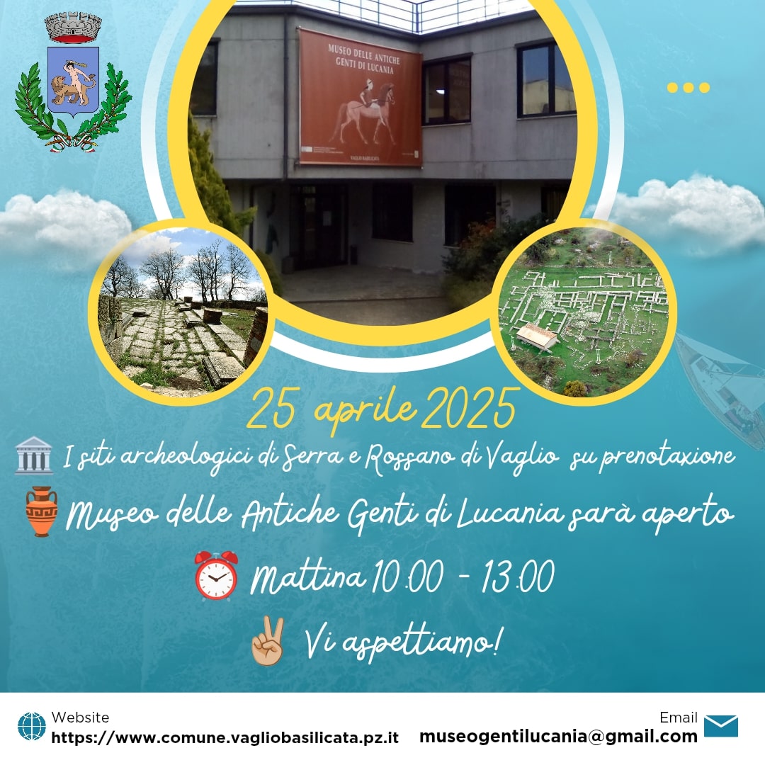 In occasione della Festa della Liberazione, il Museo delle Antiche Genti di Lucania sarà regolarmente aperto al pubblico dalle 10:00 alle 13:00.