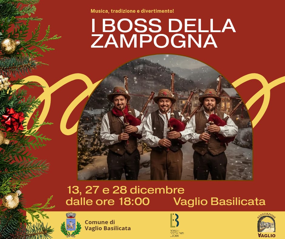 Il Comune di Vaglio Basilicata promuove una serie di appuntamenti musicali dedicati alla tradizione natalizia, con le esibizioni del gruppo I Boss della Zampogna.
